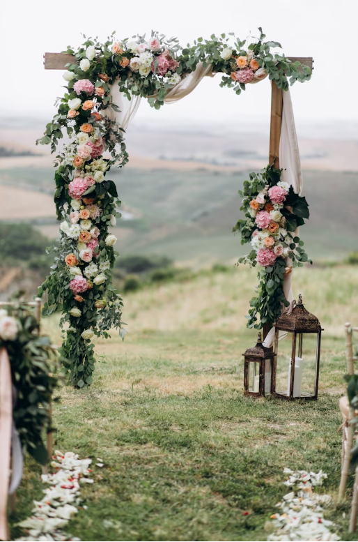Цветы – это самый популярный элемент декора для свадебной церемонии. Они могут быть использованы в качестве букетов, гирлянд, ваз и других элементов декора. Цветы могут быть разных цветов и сортов, в зависимости от стиля свадьбы.